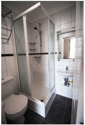 The studio features sofa-bed, open plan fully fitted kitchen (hobs, extractor fan, microwave, refrigerator/fridge), shower/WC with heated towel rail.