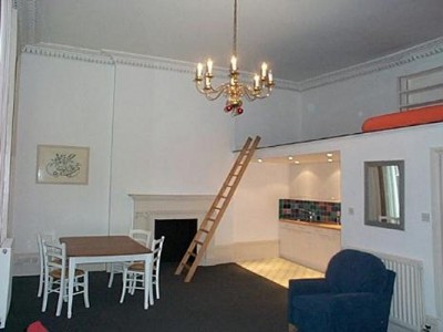 This large self contained studio flat is in a Georgian property on the first floor. Boasting plenty of space, a fitted kitchen with washer/dryer, private bathroom. Upper mezzanine area for sleeping or extra storage. Fully furnished and equipped.