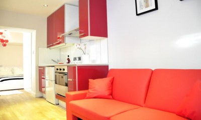 Description: a 1 Bedroom on lower ground floor, shower with bodyjets, Plasma TV, wood floors, compact elecrolux kitchen