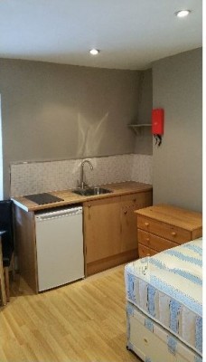 A recently modernised single semi-studio located on Matheson Road W14. Suitable for single occupancy in good location close to West Kensington tube station. Fully furnished with fully fitted kitchen with a four ring hob, stainless steel oven, a stainless steel sink unit, fridge/freezer and a range of base and wall units. Own private shower room with a power shower. Shared WC & wash basin.